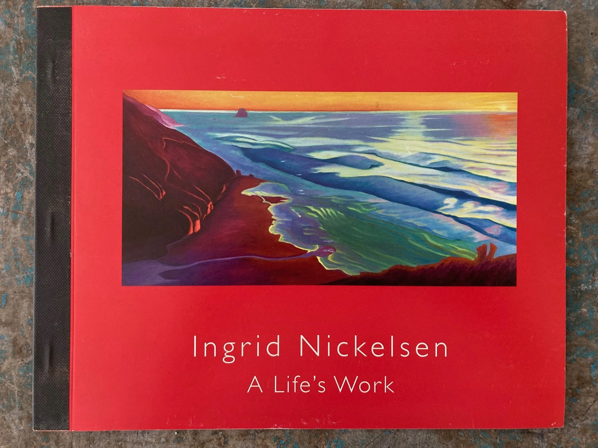 For Ingrid Nickelsen, an avid hiker and backpacker, wilderness experience was fundamental to creative practice. This artist’s approach to landscape painting involved hiking, often solo, to remote locations, packing in gear to initiate works that would later be completed in the studio. She painted favorite rivers, creeks, and mountain peaks repeatedly, sometimes remaining at those sites for days to make the observations that would be registered and transformed in her paintings’ translucent layers of rich, glowing color. Her work was influenced by early twentieth-century Expressionist painting, indigenous arts and crafts, and by indigenous Californians’ approach to the land. Tragically, Nickelsen died on a solo hike in the Siskiyou Wilderness in 2005, after sustaining incapacitating injuries in a fall. She had a canvas and other art materials with her, as she was preparing to paint from that location: getting ready for her first solo exhibition at the Morris Graves Museum. In her last days, she used artist’s charcoal to inscribe a will on her trail map, remembering friends and relatives, and expressing her wish that her estate be used to fund grants for women artists.